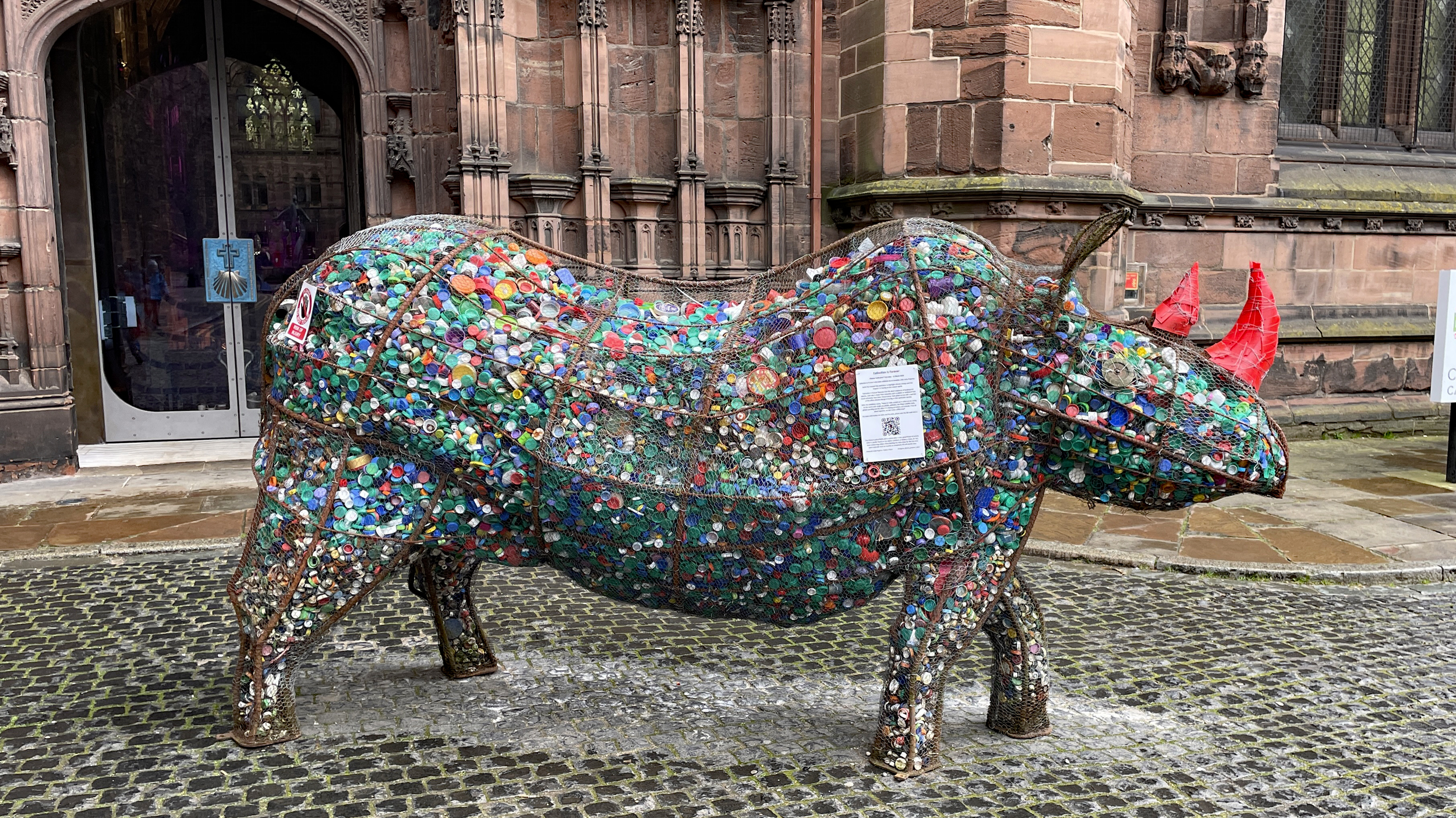This rhinoceros was made from a reinforcing rod and chicken wire frame filled with plastic bottle tops. It was we believe part of the “Rhino Mania” event which happened a few years ago. Sadly there are very few details of the event on ’tinterweb.