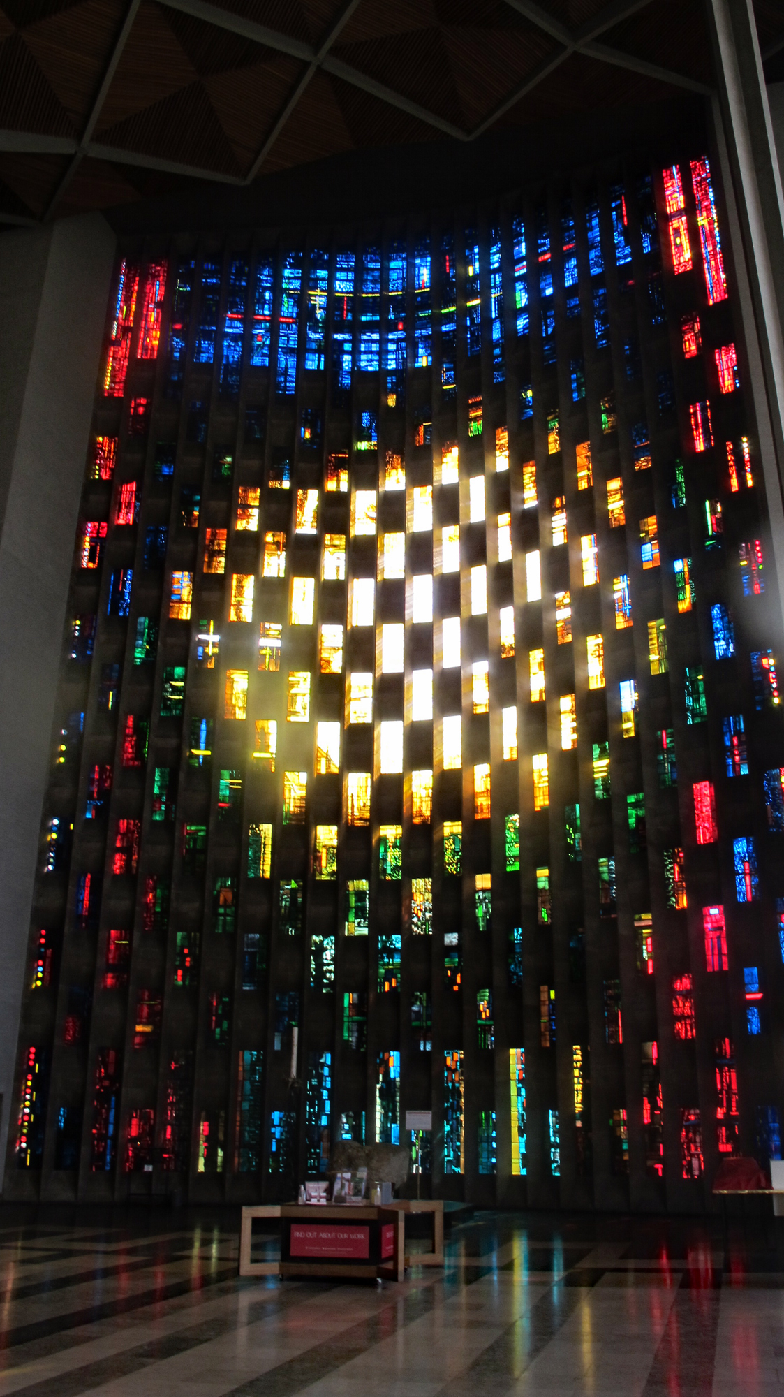 The panelled glass windows, of which there are many in the new cathedral are absolutely stunning.