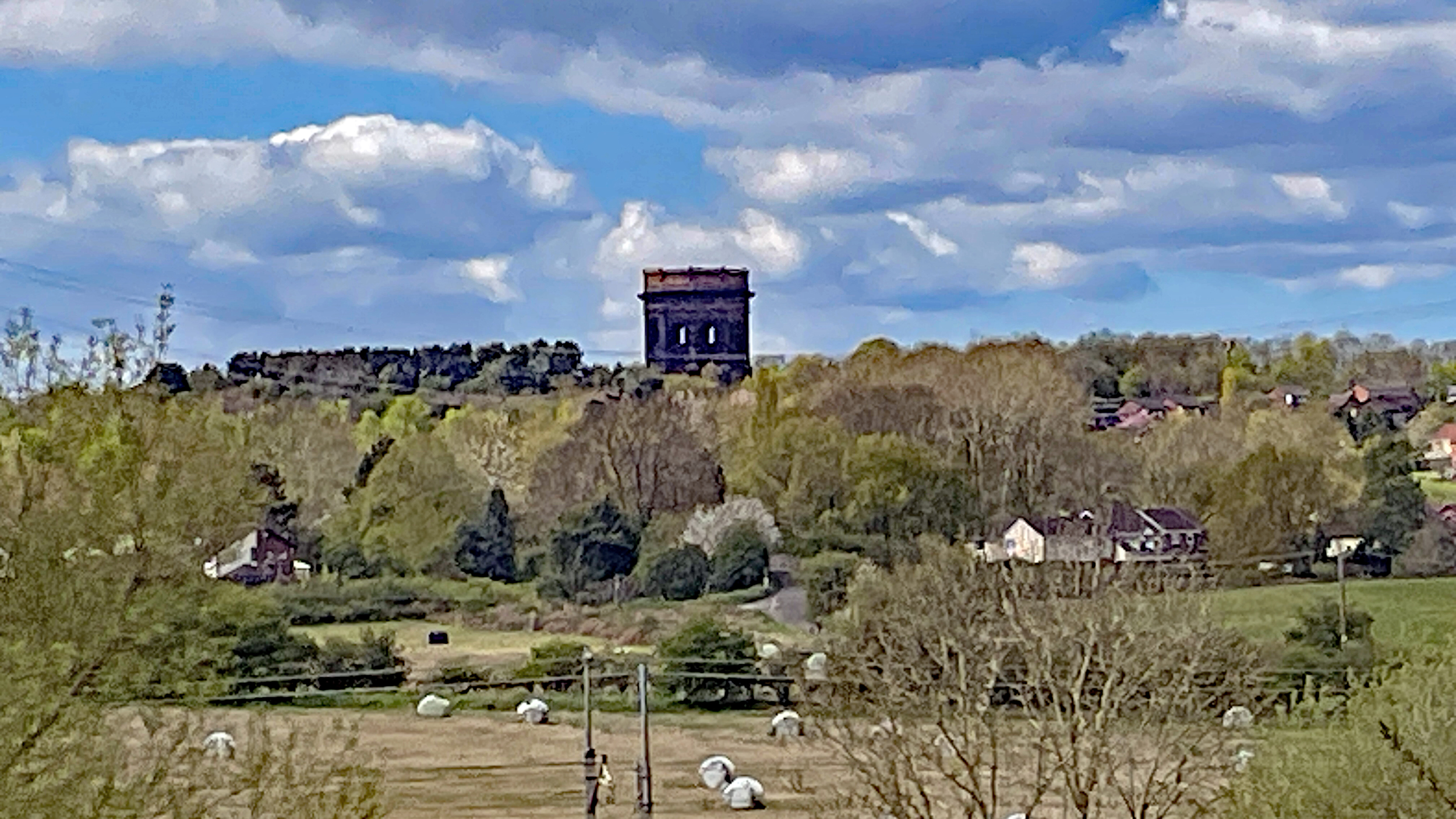 View from the Bridgewater Canal mainline back towards Runcorn with Norton Water Tower in the centre of the picture