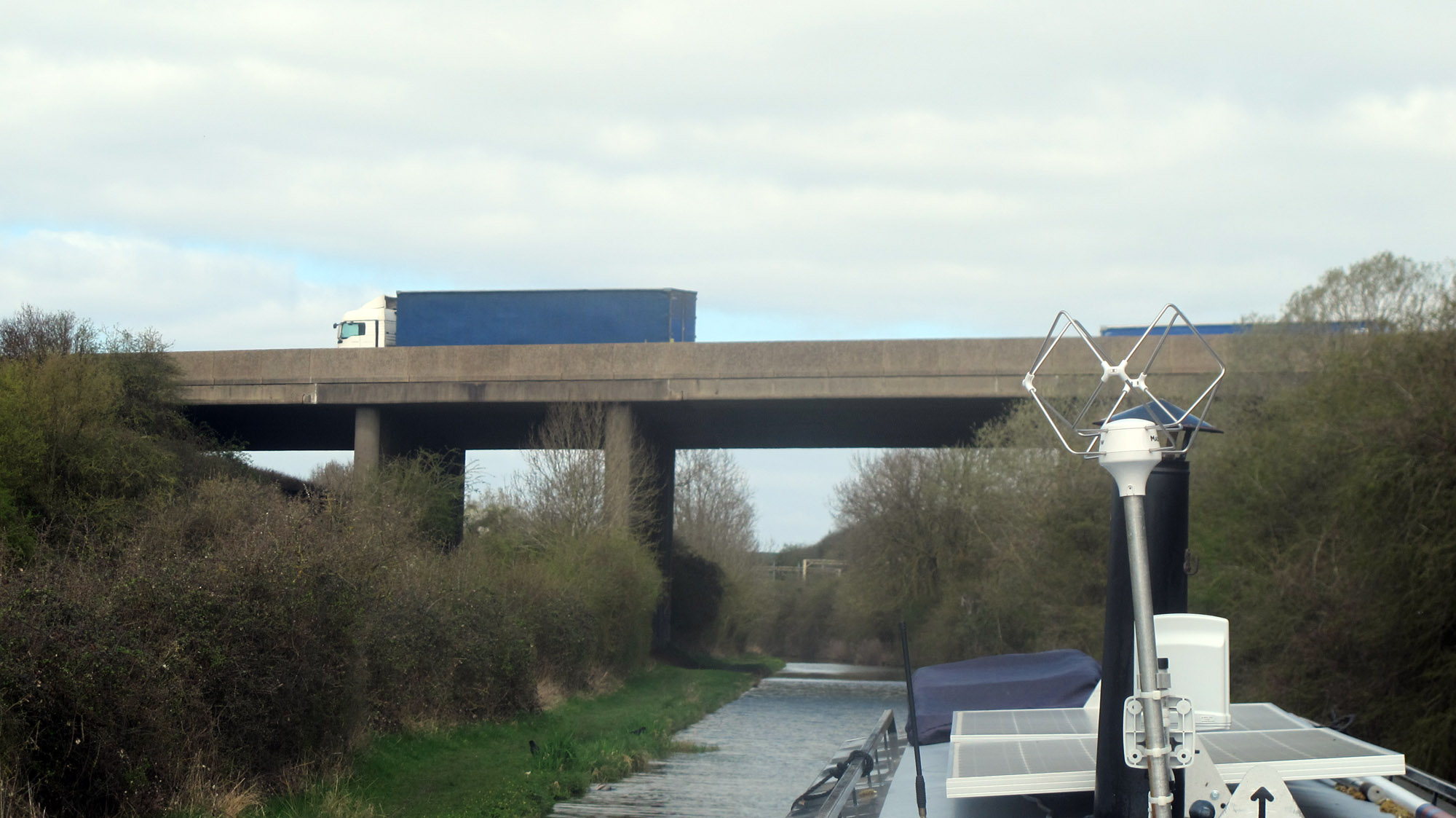 We have spent countless hours on the M6 and not that many miles from here totally destroyed our car but this is the first time I have travelled under it in a narrowboat.